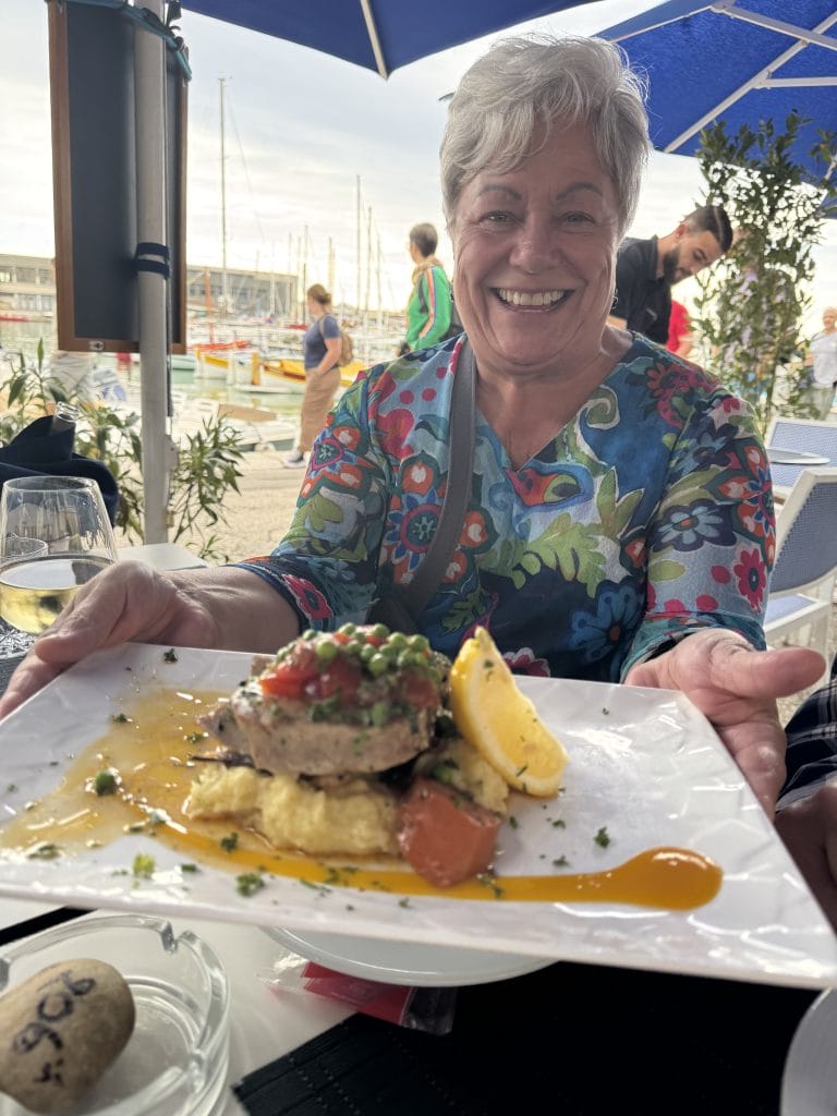 Back in the van, we traveled to the seaside city of Cassis. Yoann made some restaurant recommendations and we decided on Le Bistrot de Nino. They seated us outside, with a wonderful view of the harbor and the colorful boats. Our food was fantastic and our service even better. We enjoyed a bottle of locally made wine and wondered the town a bit before the drive back to the port in Marseille. Yoann, born in the north of France but has called the Provence region home for 10 years, was a wonderful guide and driver and had us back to the port with plenty of time before all-aboard at 4:30.