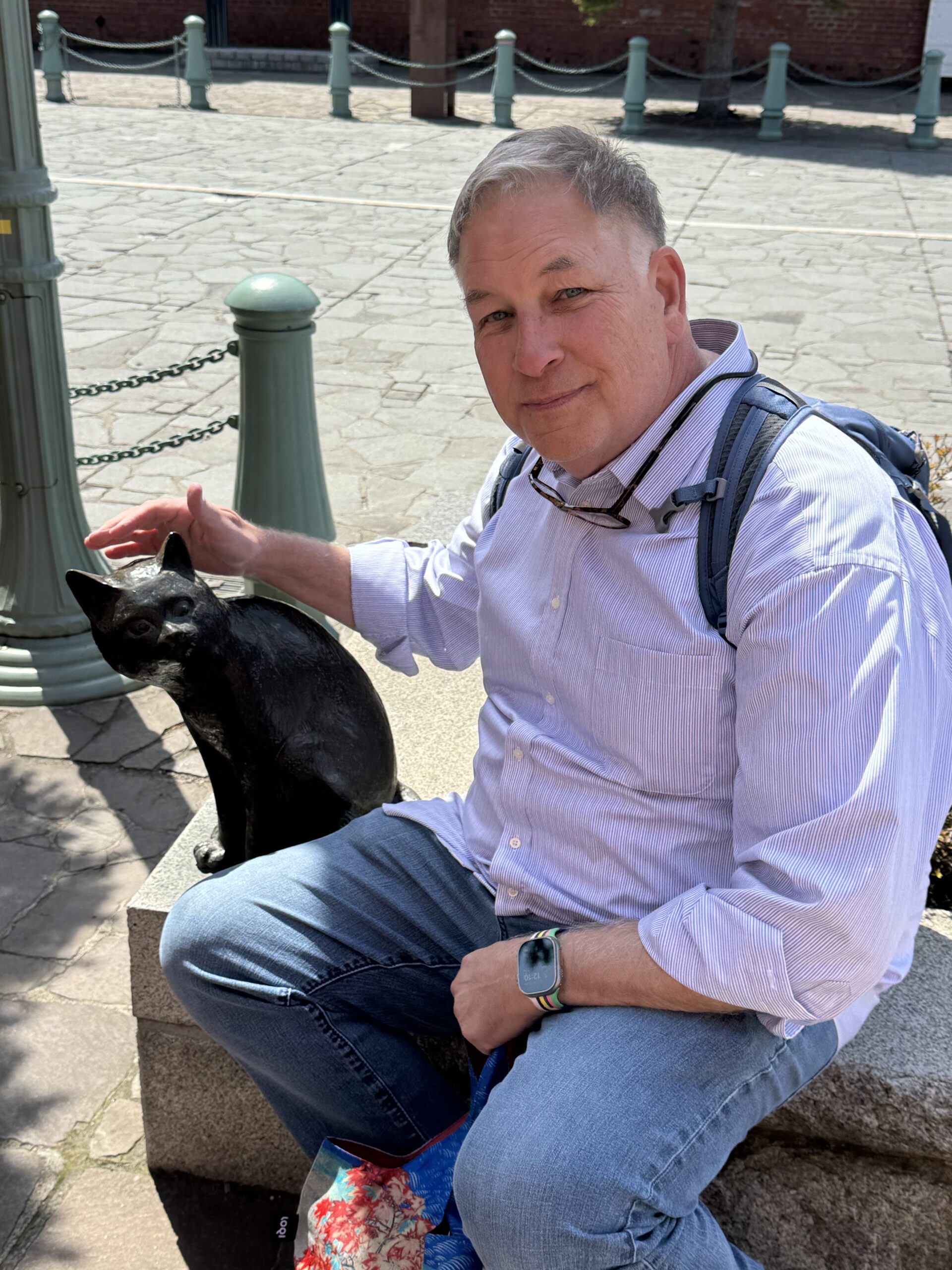 Our next stop was the Kanemori Red Brick Warehouses, along the bay. This restored complex, built in 1869, used to serve as shipping and commerce warehouses. Since 1988, the warehouses have been converted into a commercial complex featuring shopping malls, restaurants, and event spaces. The shops feature clothing, souvenir, food, toys, pottery and jewelry stalls, amongst others. Sharon shopped a bit, while Marshall got his haircut.