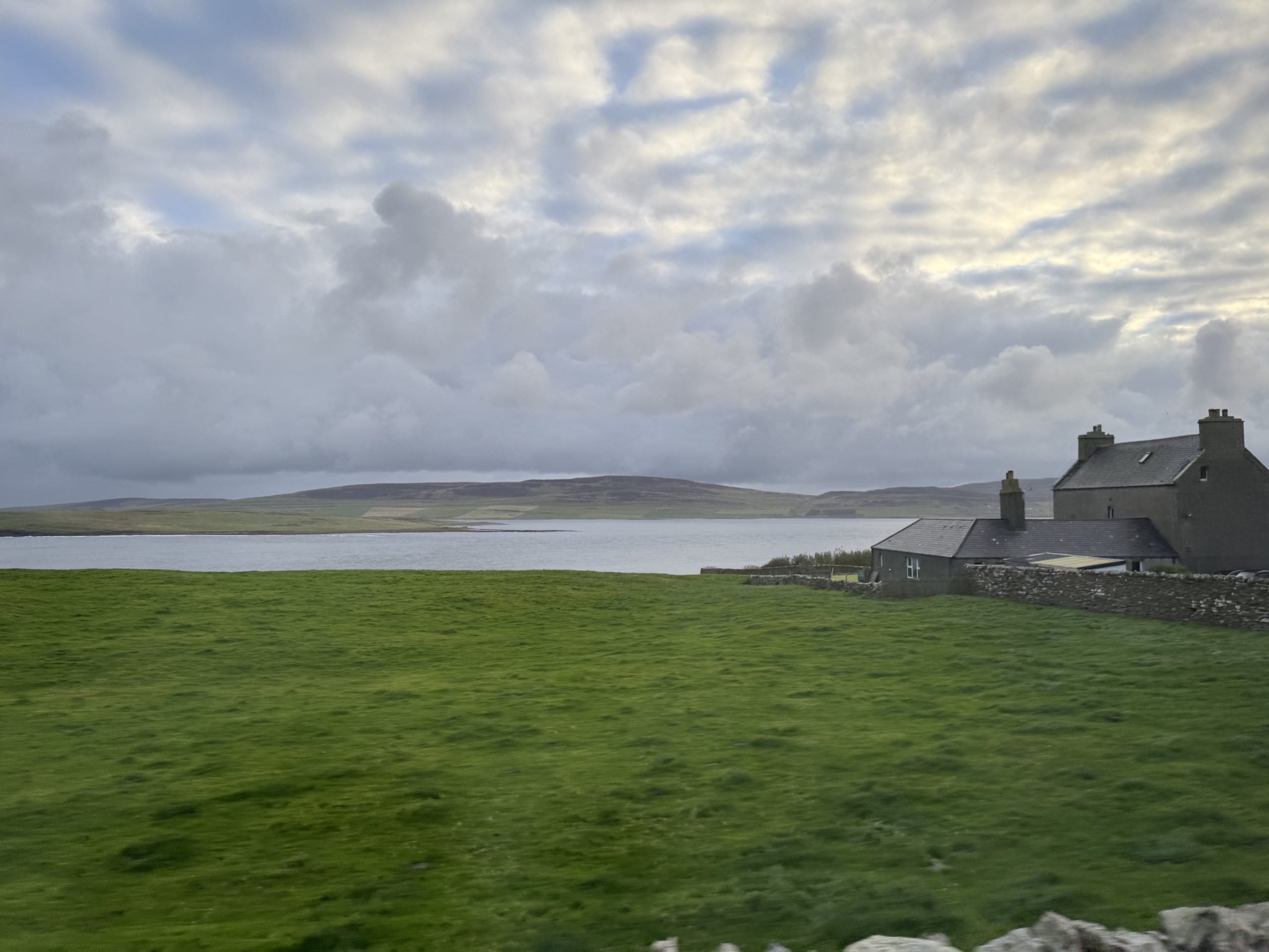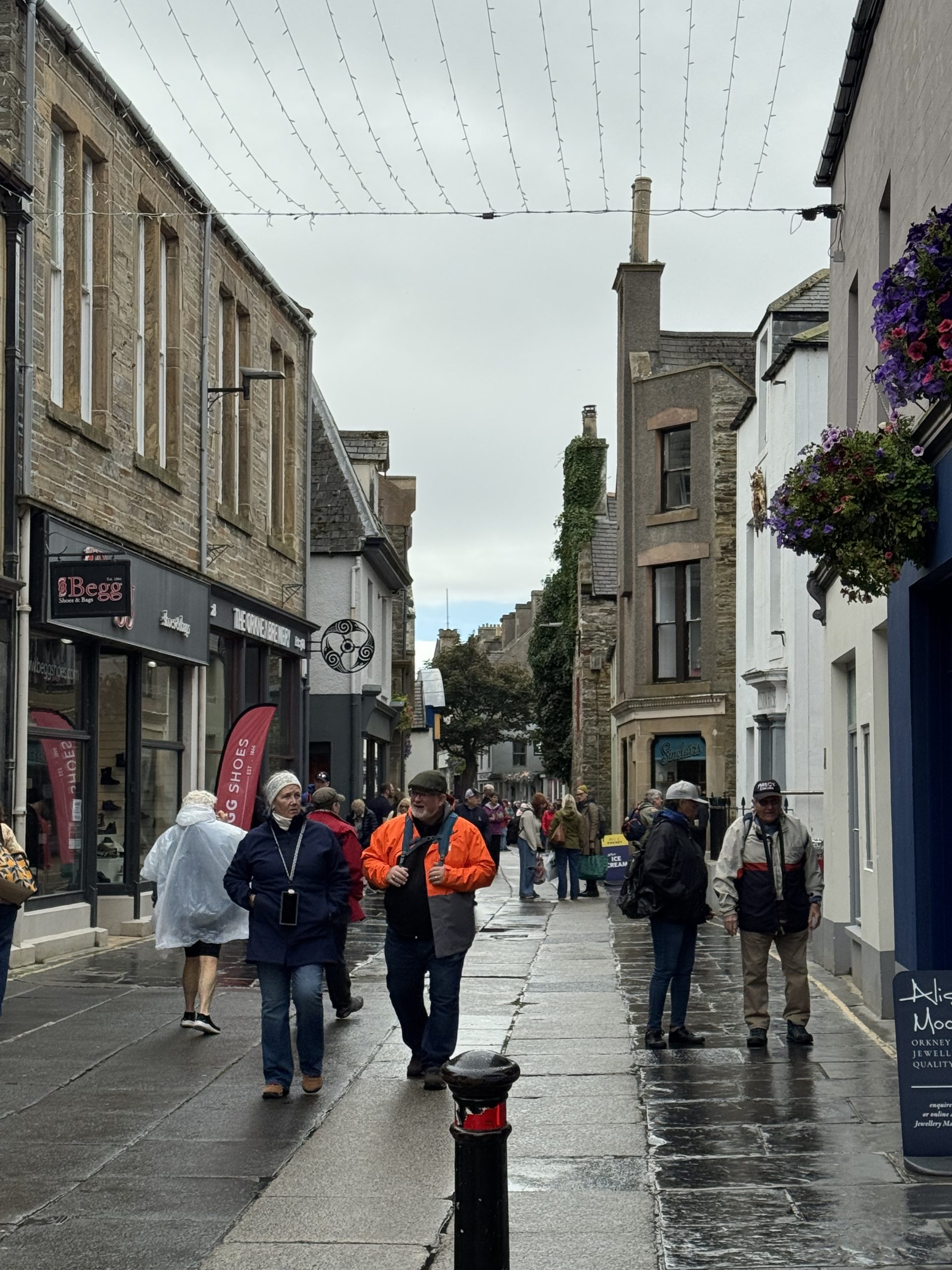The landscape was beautiful, striking, serene. We saw multiple rainbows, though it never really rained on us. Back to the port, we took the town-provided shuttle into Kirkwall and enjoyed walking around. We stopped at Bothy Pub for some yummy burgers made with local beef and cheddar.