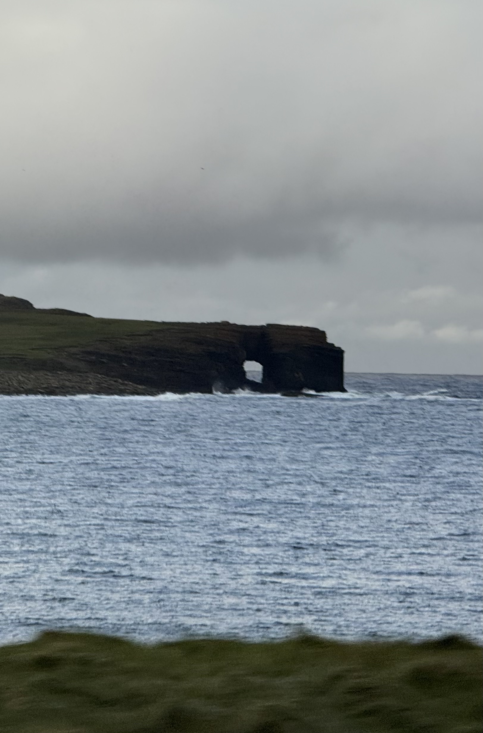 The Orkney Islands are a part of Scotland and consist of 70 islands, of which 20 are inhabited. Most live on the main island, population 9000, where we were today. The tour would circumvent the island and our first stop was the Brough of Birsay, a small island that used to be the seat of a Viking king. Several ruins remain.