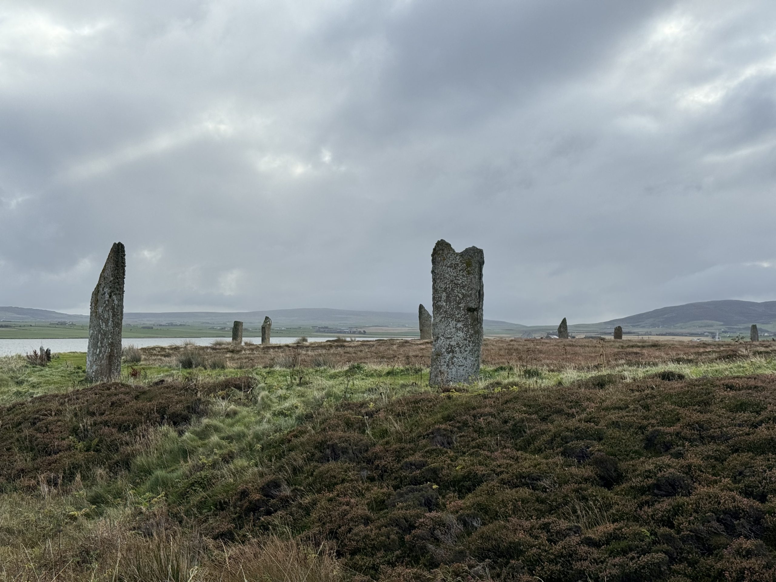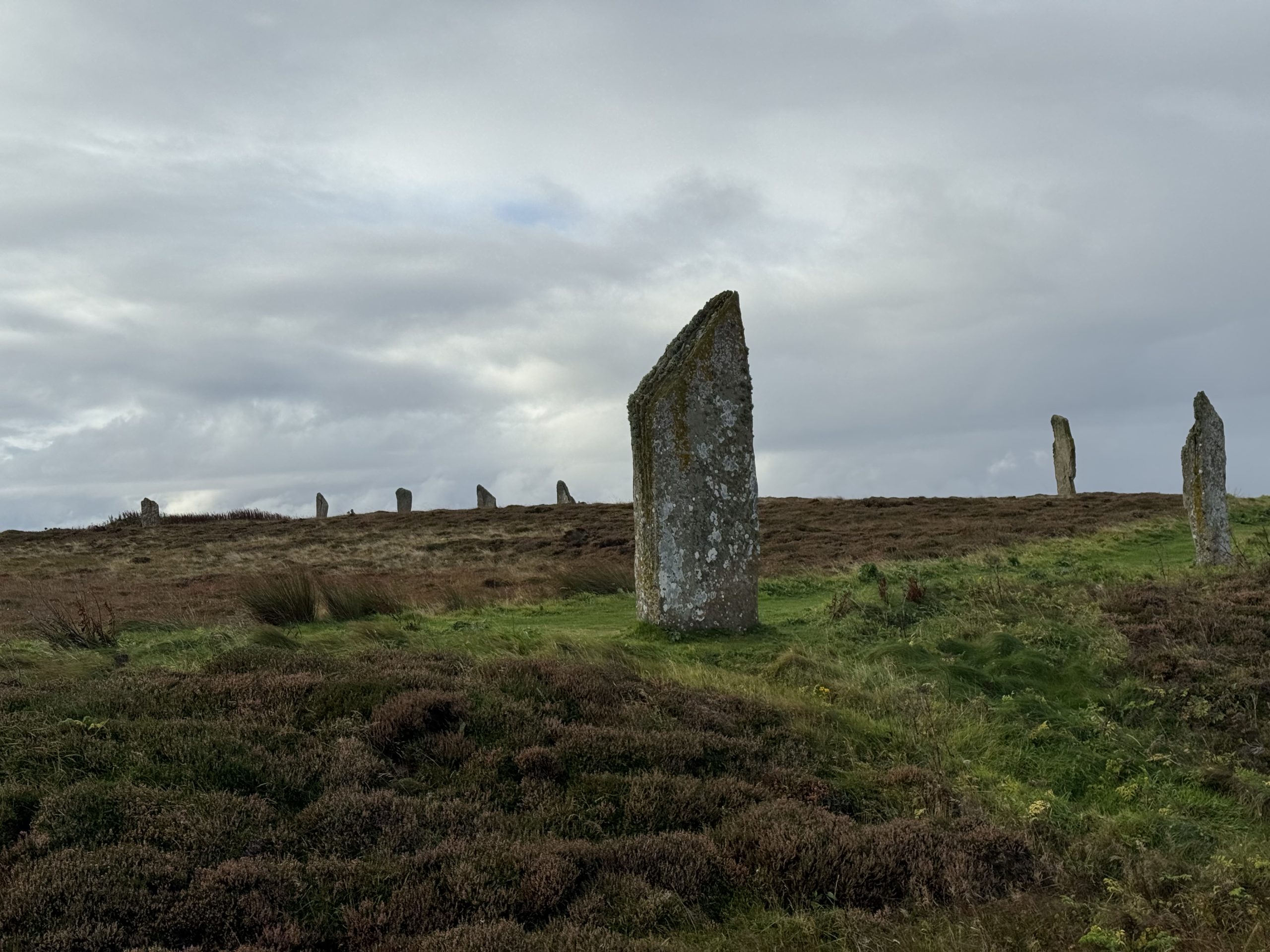 We came onto several henges, thought to be 4400 – 4600 years old. We got to walk around one of them, the Ring of Brodgar. It is not known whether these ancient sites were ritualistic, or served some purpose of community or time telling, but it’s astonishing how these large stones were moved and erected.