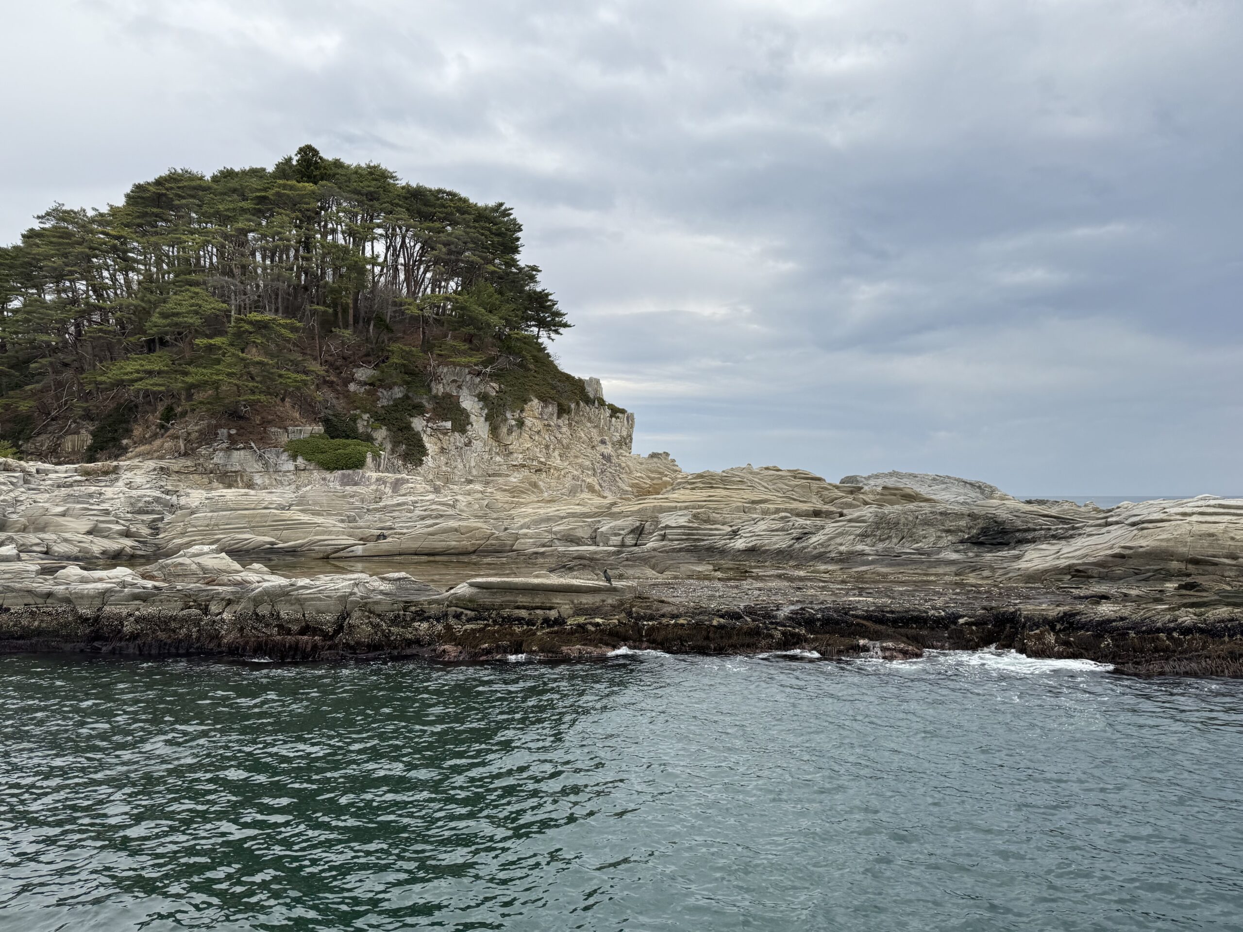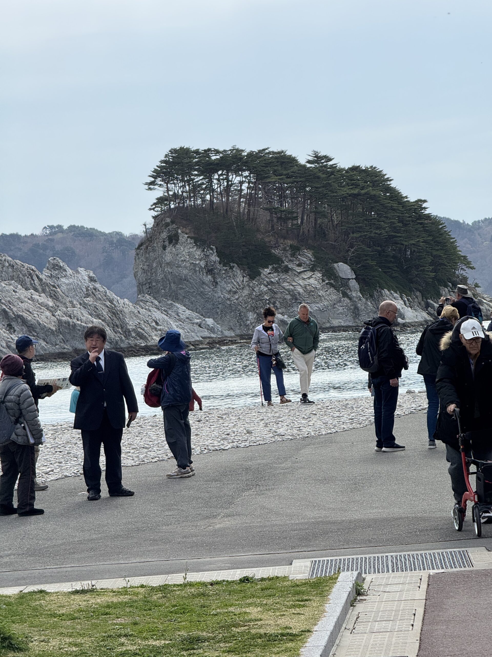 We also took a 30-minute boat ride along the coastline of Miyako Bay where we observed some bird rookeries and some additional striking landscapes. The ride was very pleasant from atop the two-level vessel, where the breezes were brisk and we could see the birds. From the boat we were also able to see some of the new tsunami wall that was built after the devasting 2011 earthquake and tsunami that hit eastern Japan, killing 19,700 persons. Our guide explained that the 133 feet high tsunami waters would have breached this new wall system, but what the wall is supposed to do is provide a break wall as the water recedes, hoping to catch people before they get pulled out to see. Wowsa.