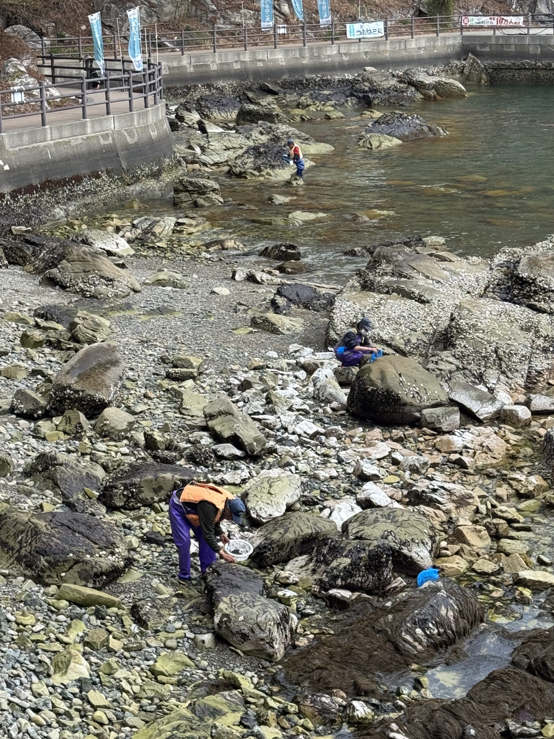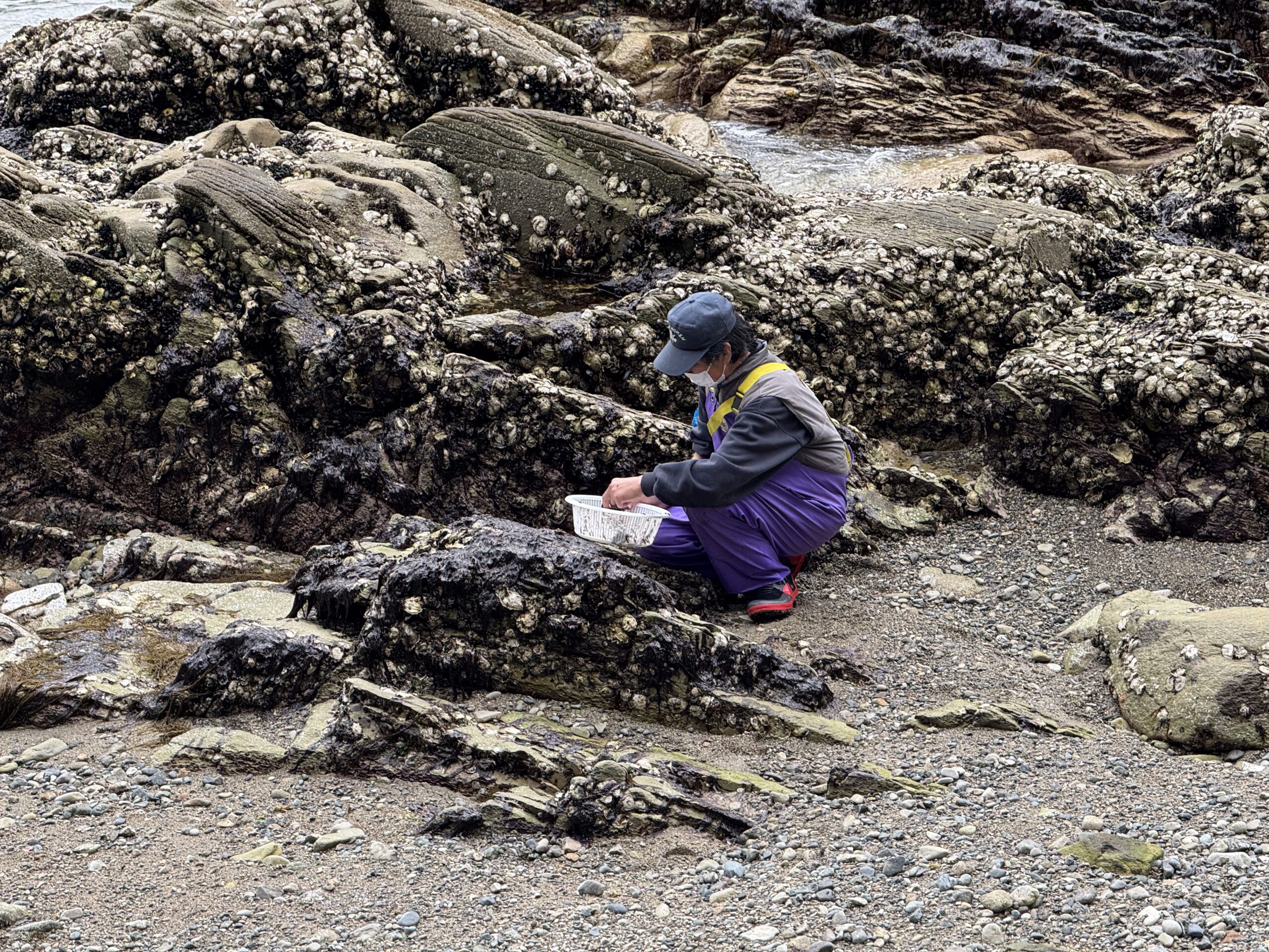 Harvesting seaweed from the rocks.