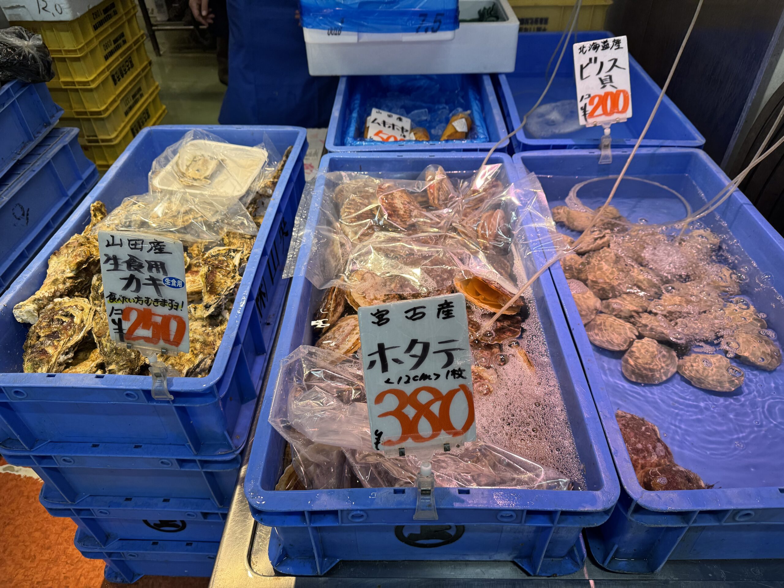 Oysters, scallops and other delicacies.