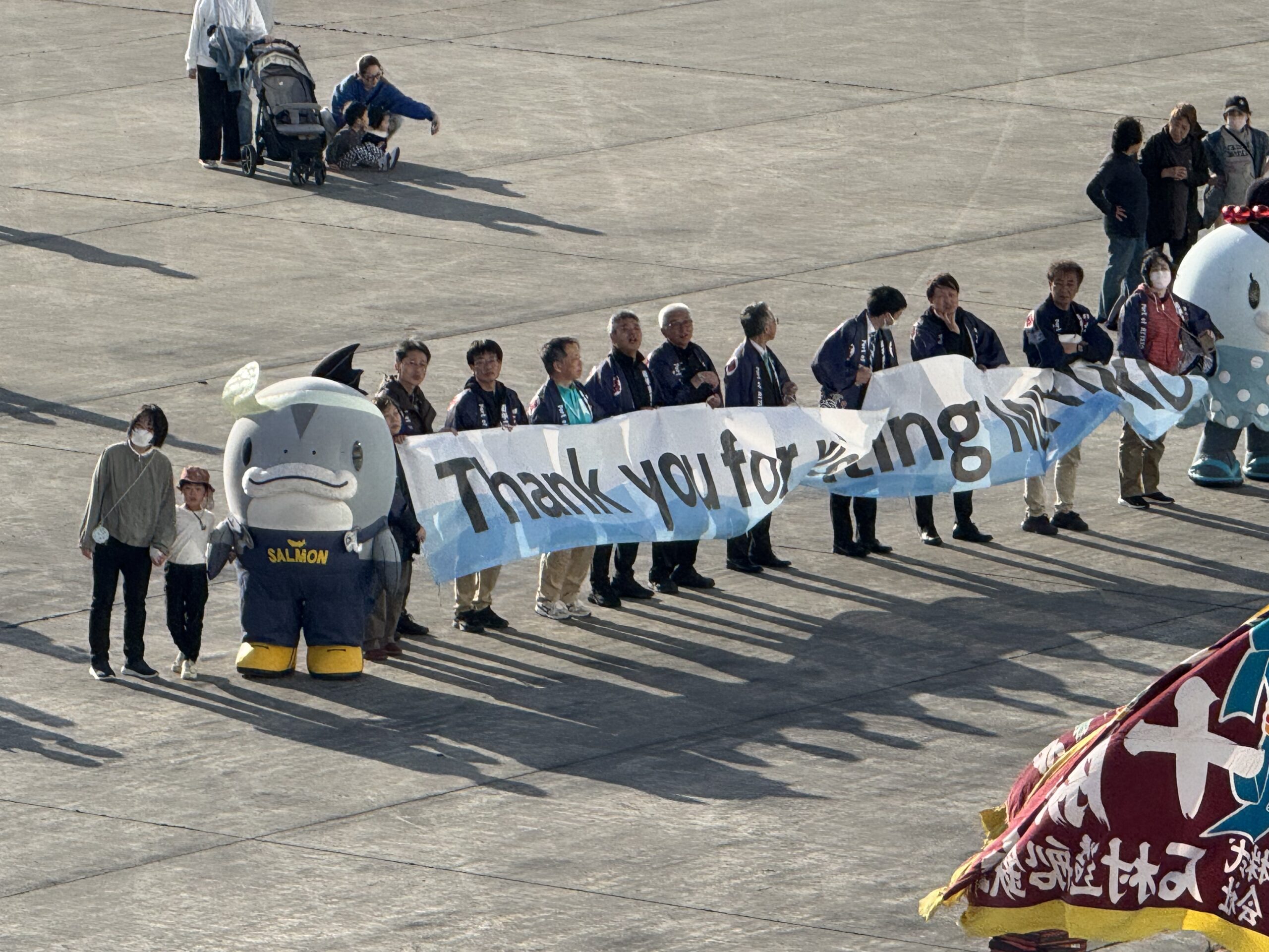 Listen, we’ve seen quite a few little pop-up markets next to our ship over the last couple months but this one might have been the nicest. And the best part, it was also open to the local people so they were visiting the market too. Crew members were there also as it was so easy for them to pop off of the ship for a little shore leave. We loved it!! Sharon bought a Happi Coat which is a traditional straight-sleeved Japanese jacket, typically made of cotton, often featuring indigo dyes, kanji, or traditional motifs. From another stall, she bought matching earrings made of Japanese washi paper. The artist explained how she makes the paper and was clearly very passionate about her art. Our last purchase were rice cakes, being sold by an organization that employs disabled Japanese.