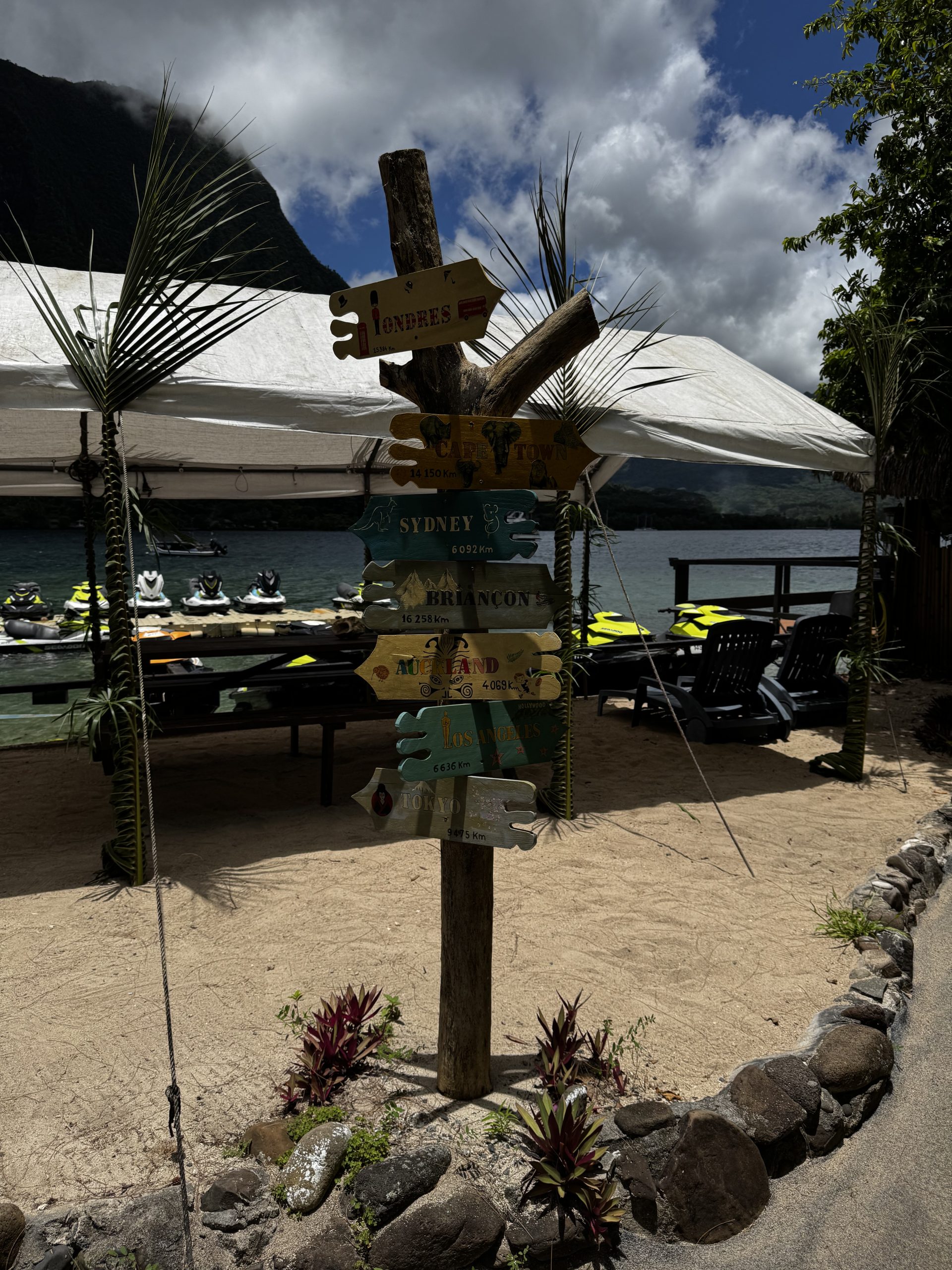At the conclusion of the tour, we headed back to sea level and the activities center. We were wet, covered in mud and sweat, and wondered aloud whether the ship would even let us back on. Our guide Marco poured us a rum punch drink and we enjoyed the view of the bay. The Moorea Activities Center, which is very organized and professional, also provides water ski tours. They provided a ride back to the pier, where after a fairly long wait in line, we boarded the tender shuttle back to the ship. Exhausted, we enjoyed the late afternoon shadows of the mountains from our balcony.