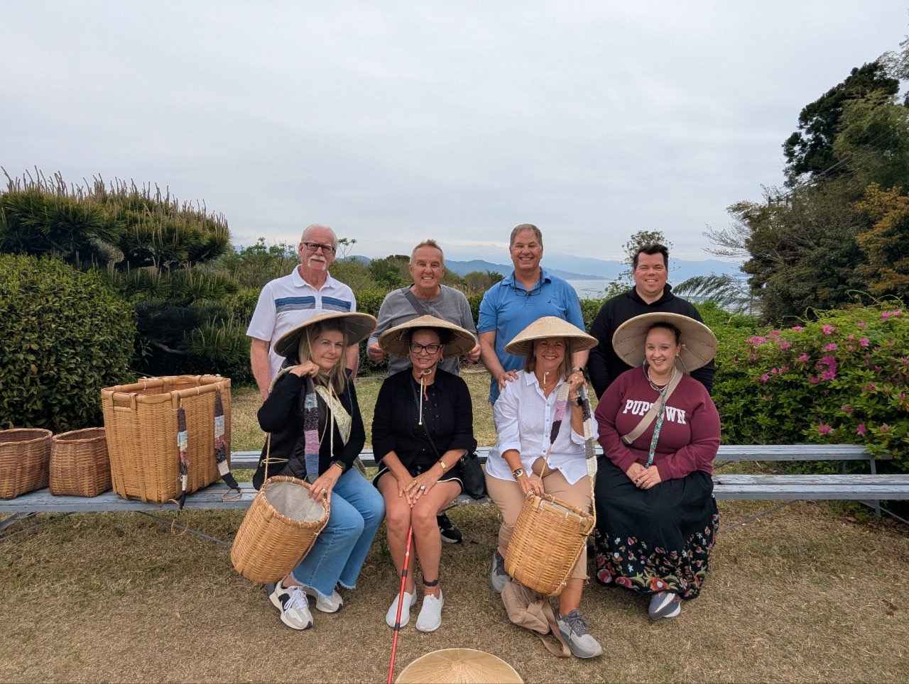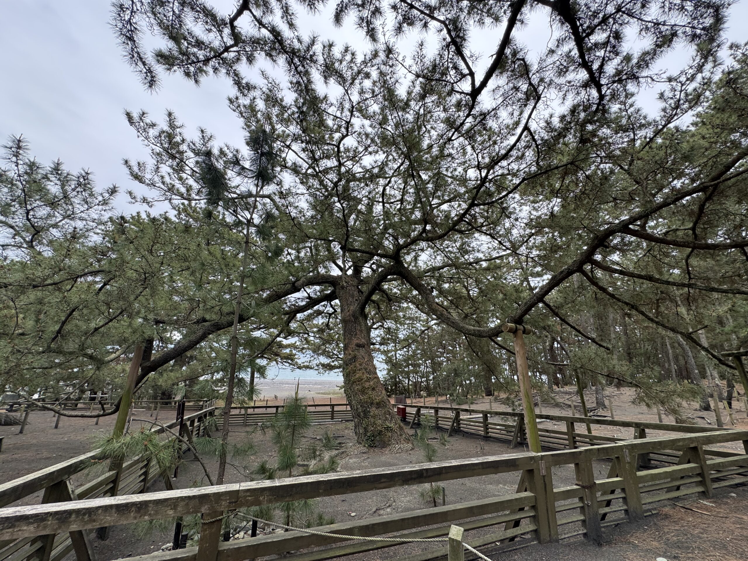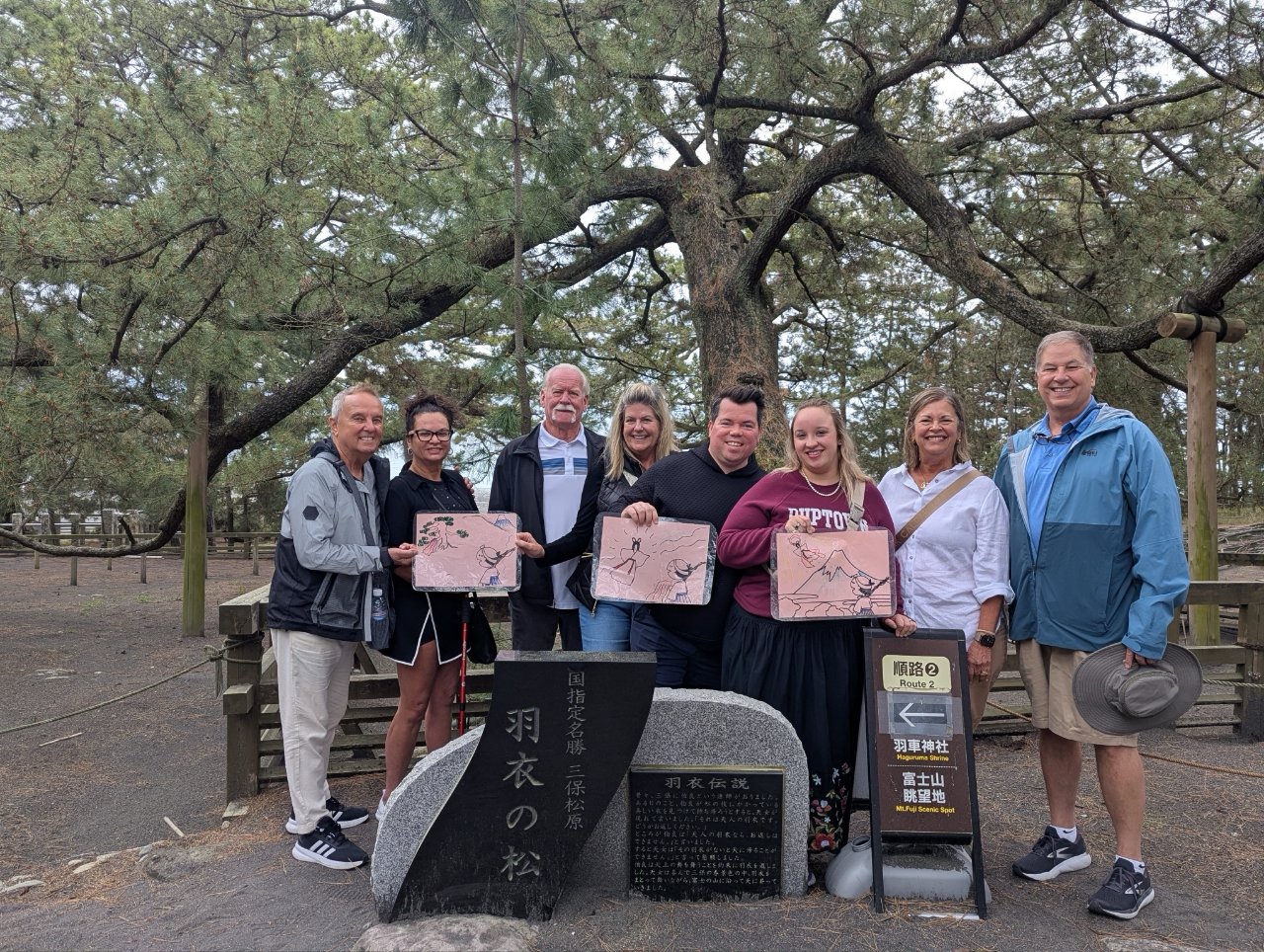 Our first stop was the Miho no Matsubara Pine Tree Grove and beach. This area is a UNESCO world heritage site and boasts a 650-year-old tree. The pines go right up to a 4.5-mile-long black sand beach, which boasts a wonderful view of Mt. Fuji when the skies are clearer. Today, we enjoyed a walk along the beach and amongst the ancient trees.