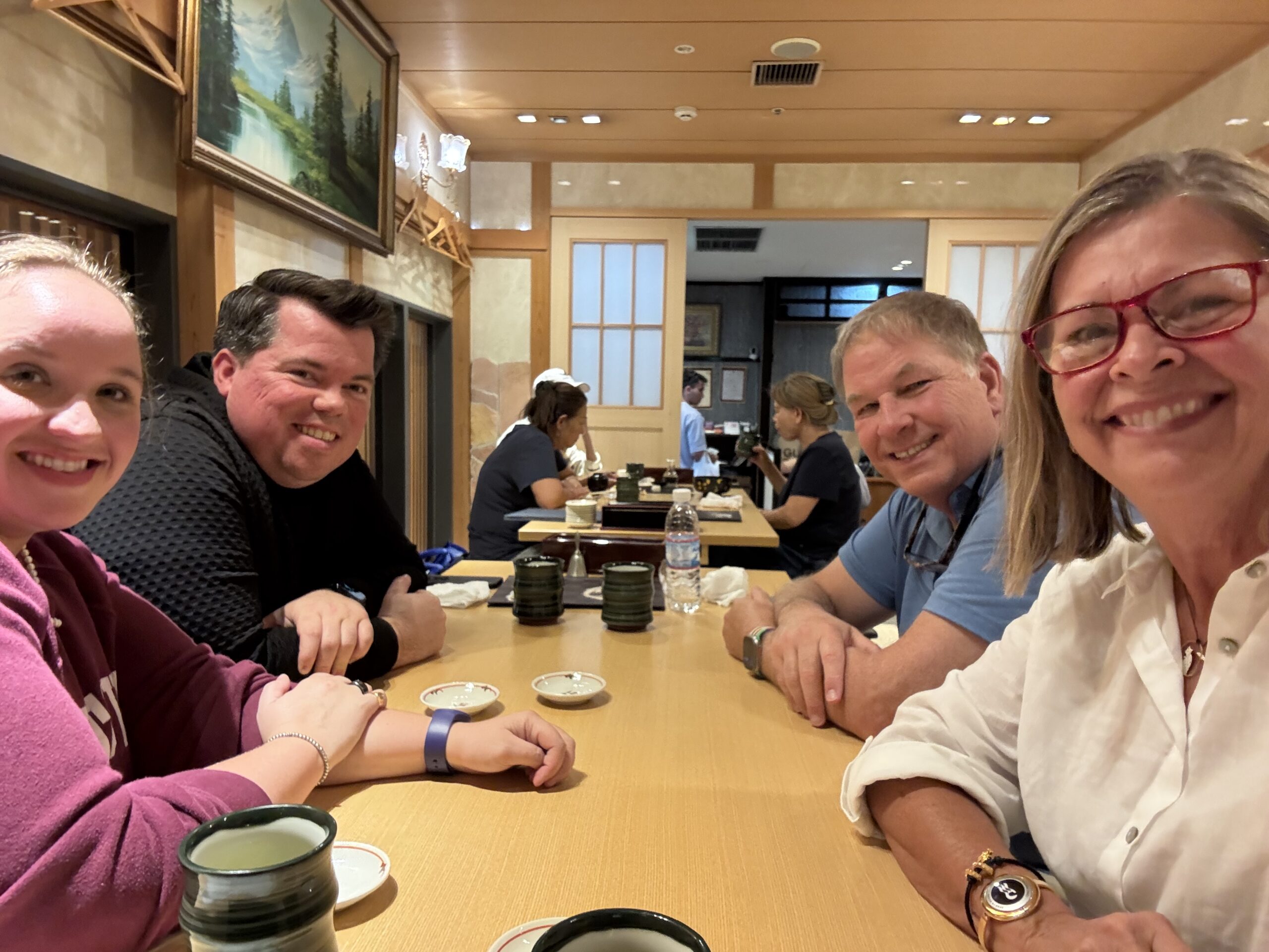 Shimizu has a population of 32K and is a suburb of Shizuoka (230K). Its main industries are agriculture (tea), tourism (Mt Fuji) and shipping. We were greeted at the pier by Local Travel Partners manager, Hirokane and then met Miyuki. She jumped with joy when she heard we were from Ohio. It turns out she studied English at Ohio Wesleyan University, just a short 30-minute drive from our home.