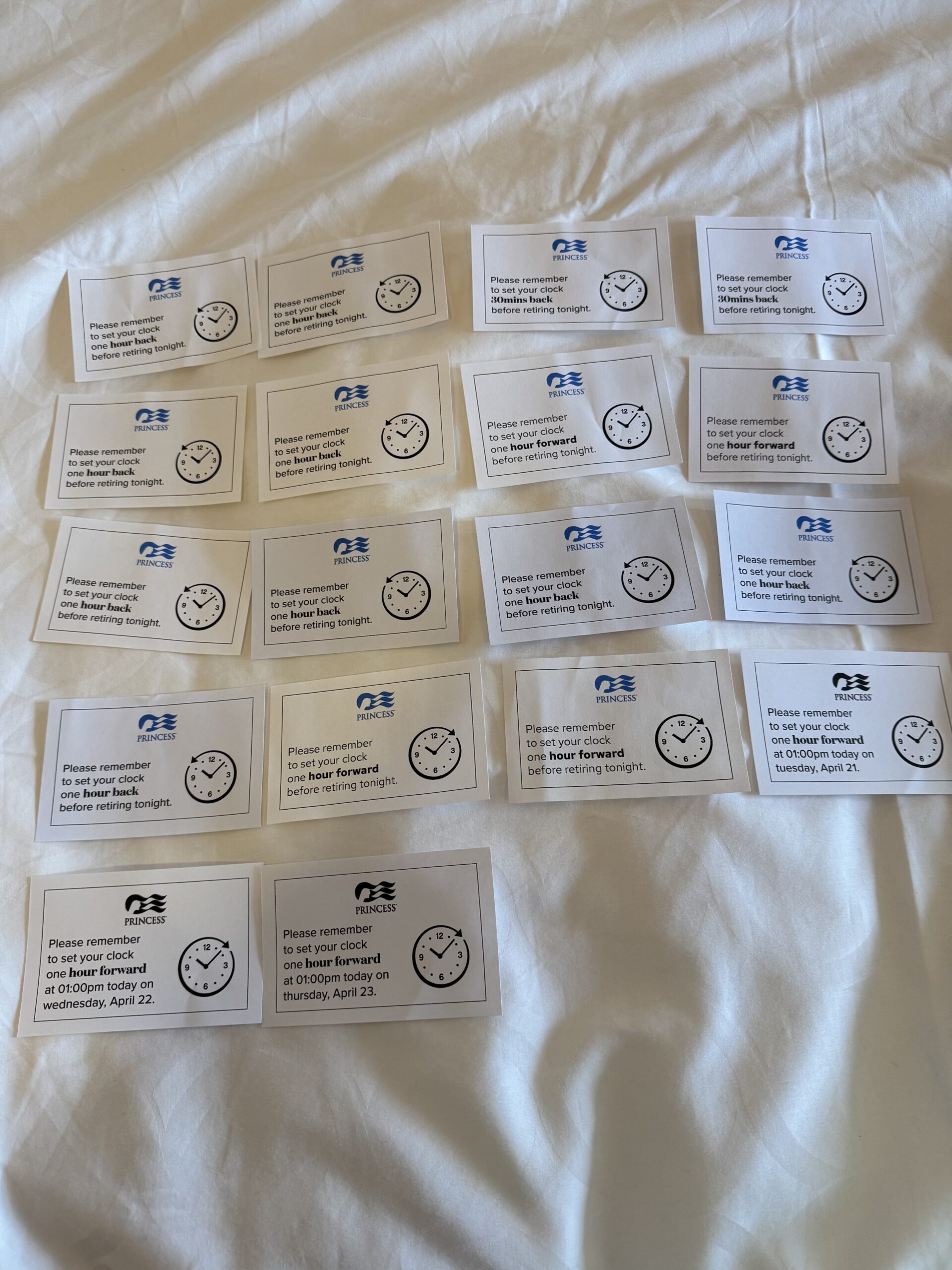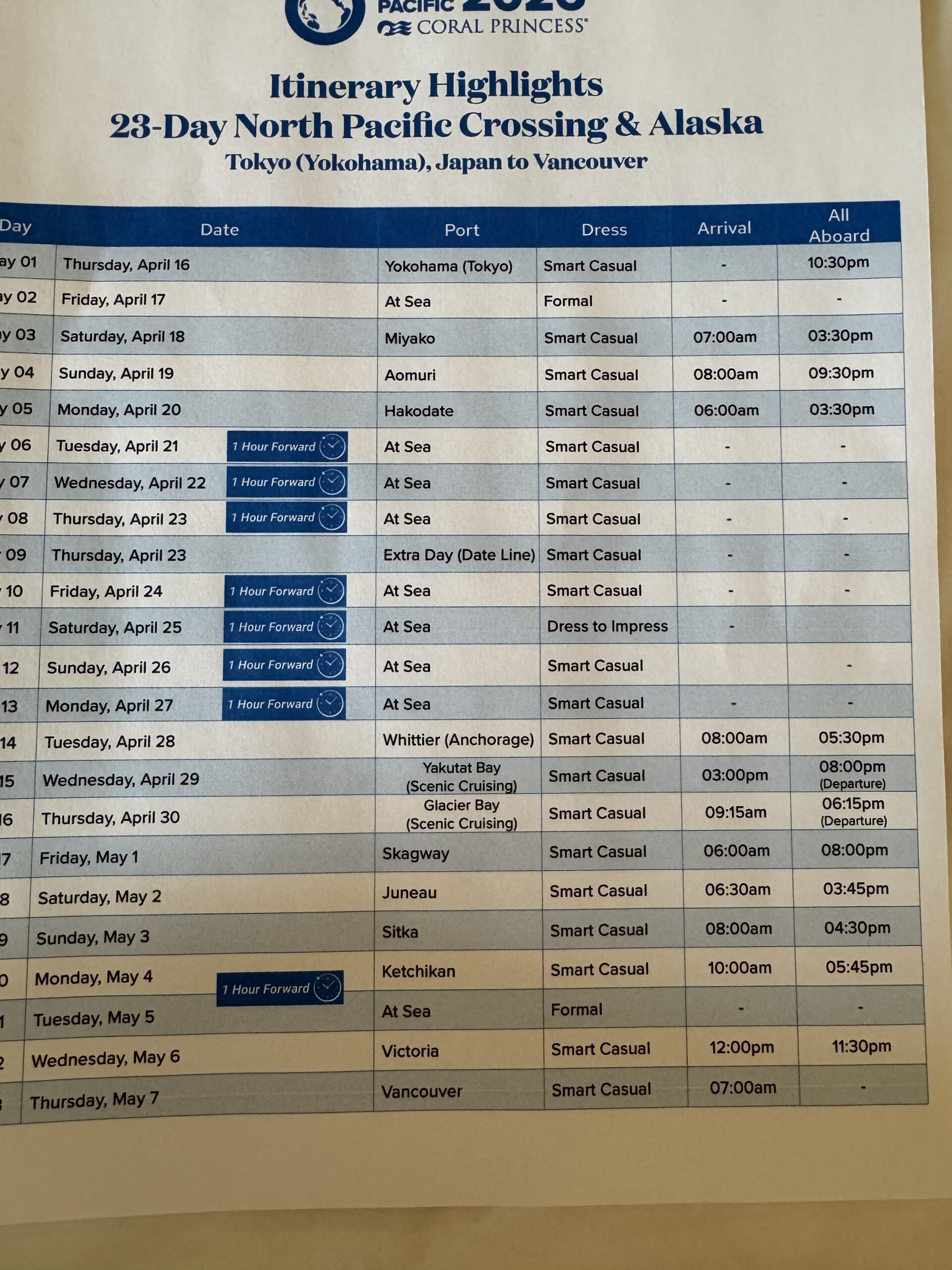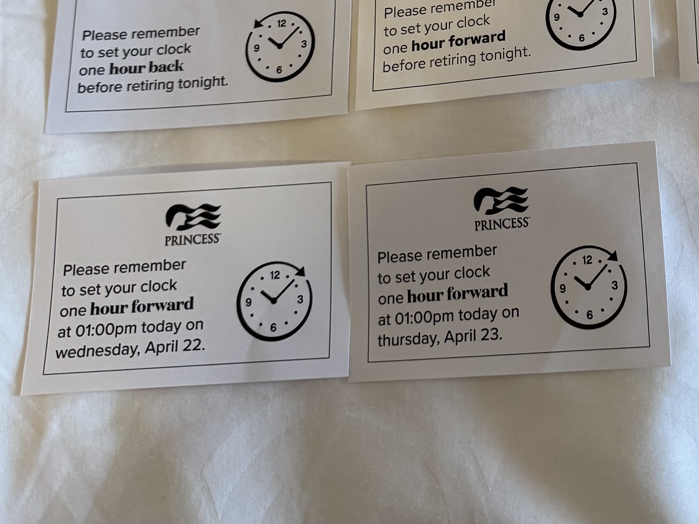 It’s been fun to watch the ship manage the whole affair. Drew our Cruise Director refers to the first April 23 as April 23 A, and the second April 23 as April 23 B. Even the Princess Patter has two April 23 issues. This is real life ground hog day.
