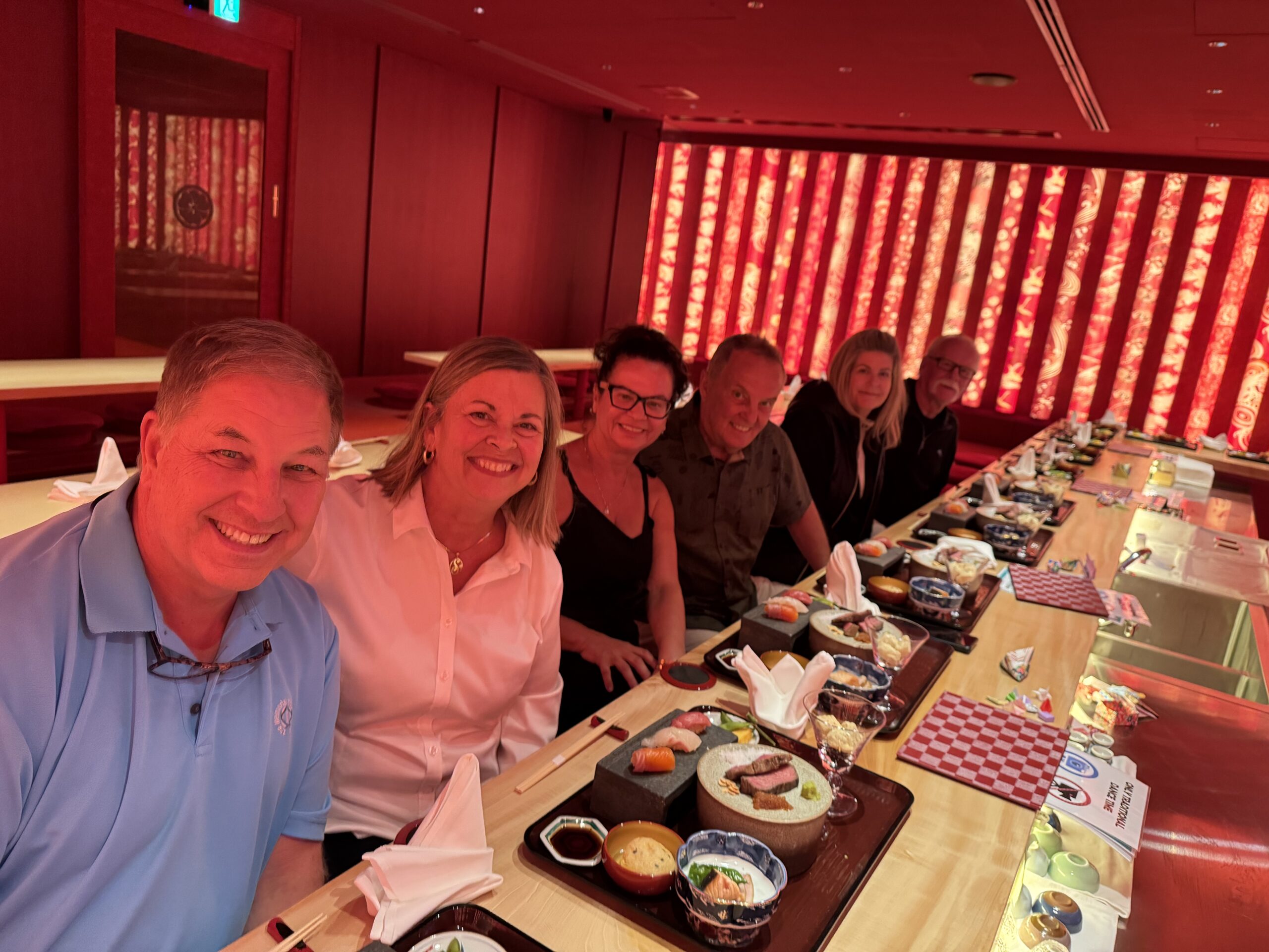 Sharon, Marshall, Rose, Len, Lisa and Ron with our Geishas.