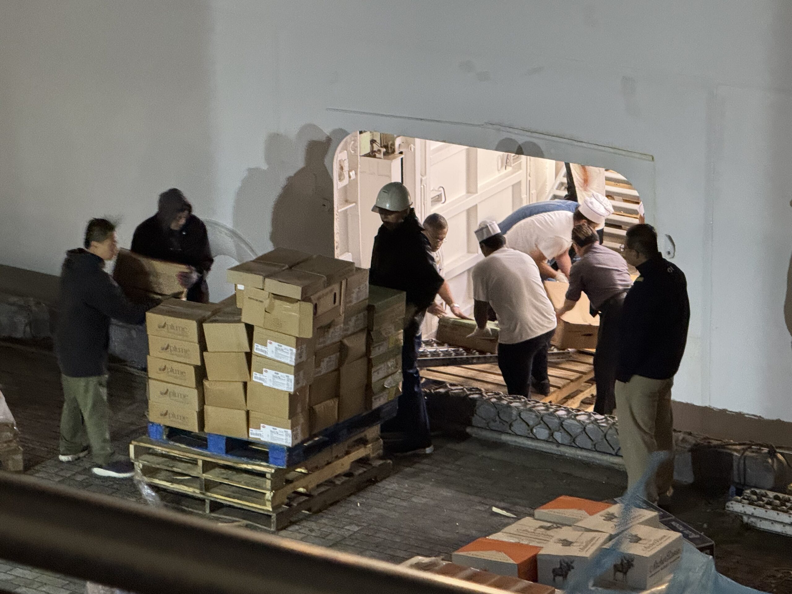 As we came back to the ship in the evening, they were still loading supplies for our journey to Alaska.